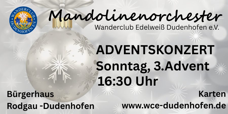 Bald ist es soweit, am 14.12.25 um 16:30h im Bürgerhaus Dudenhofen findet wieder unser traditionelles Weihnachtskonzert statt.